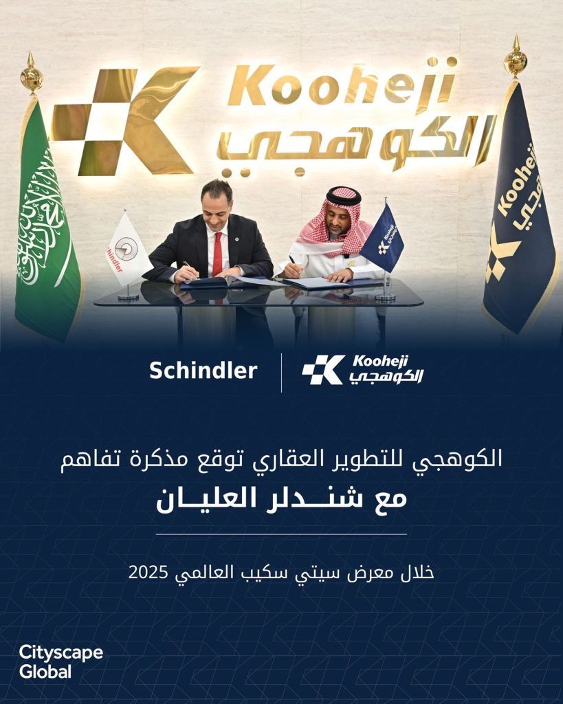 وقّعت شركة الكوهجي، الرائدة في مجال التطوير العقاري بالمنطقة، مذكرة تفاهم مع شركة شندلر العليان، المتخصصة عالميًا في تقنيات المصاعد والسلالم المتحركة، وذلك خلال معرض سيتي سكيب العالمي بالرياض 2025 لمشروع فلامنت. وقد وقع الاتفاقية من جانب الكوهجي المهندس محمد عبدالغفار الكوهجي، الرئيس التنفيذي، ومن جانب شندلر العليان السيد عبد الرحمن، المدير الأول لإدارة الحسابات العالمية، في خطوة تؤكد التزام الطرفين بتقديم أعلى مستويات الجودة والسلامة والراحة للمقيمين والمستثمرين.